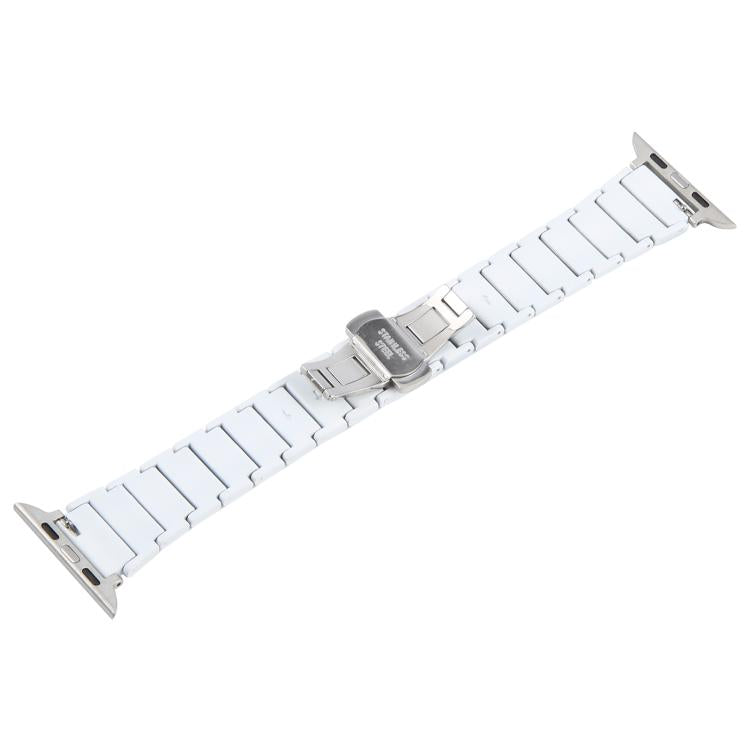 Correa de acero de 18 mm con tres cuentas de cerámica para Apple Watch de 42 mm, 41 mm, 40 mm y 38 mm (blanca)