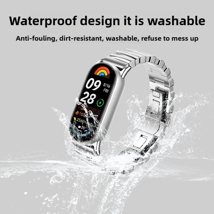 Correa de acero inoxidable con hebilla de mariposa irregular para Xiaomi Smart Band 9/8 (plateada)