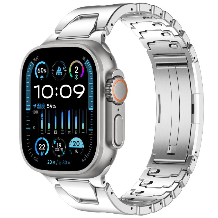 Correa de acero inoxidable con hebilla de mariposa y liberación rápida tipo H para Apple Watch de 42 mm, 41 mm, 40 mm y 38 mm (plateada)