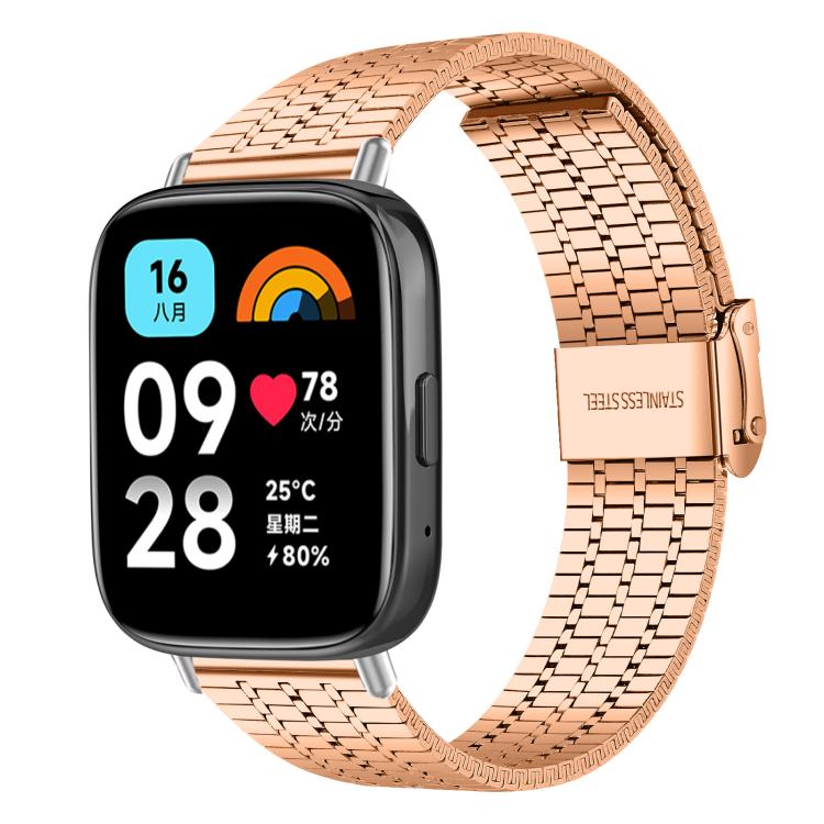 Correa de acero inoxidable con hebilla de siete cuentas para Redmi Watch 3 Active/Watch 3 Lite xDfind (oro rosa)