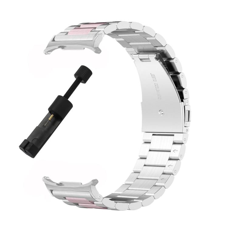 Correa de acero inoxidable de tres cuentas para Samsung Galaxy Watch Ultra 47 mm/Ultra 2025 con herramienta de extracción (plateada y rosa)