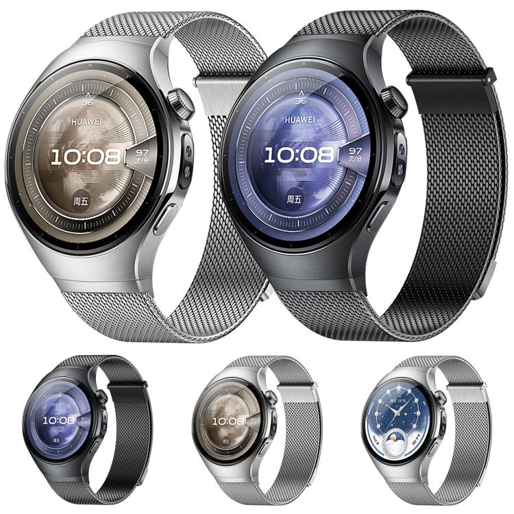 Correa de acero inoxidable magnética milanesa con interfaz sin costuras para Huawei Watch 5 de 46 mm (negro)