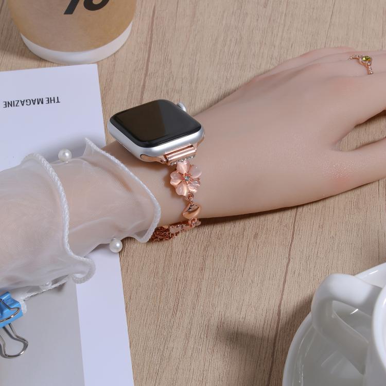 Correa de aleación con trébol de cuatro hojas para Apple Watch de 46 mm, 49 mm, 45 mm y 44 mm (oro rosa + trébol de cuatro hojas en oro rosa)