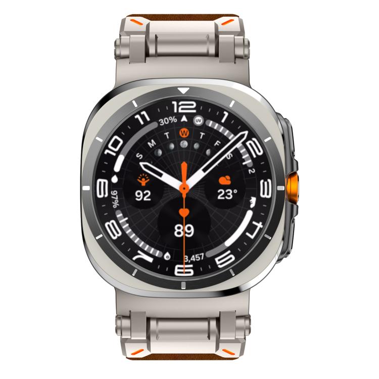 Correa de cuero con cabeza de acero inoxidable Explorer para Samsung Galaxy Watch Ultra de 47 mm (titanio Crazy Horse)