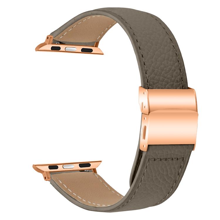 Correa de cuero con hebilla de tortuga en oro rosa y textura de lichi para Apple Watch de 46 mm, 49 mm, 45 mm y 44 mm (gris)