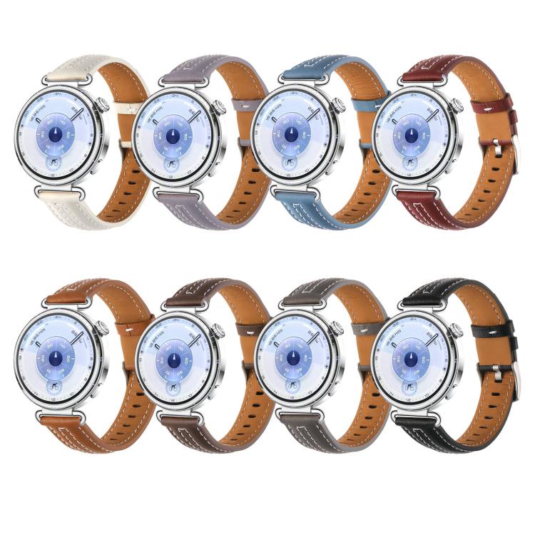 Correa de cuero con hebilla plateada para Huawei Watch GT 6 de 41 mm (azul)
