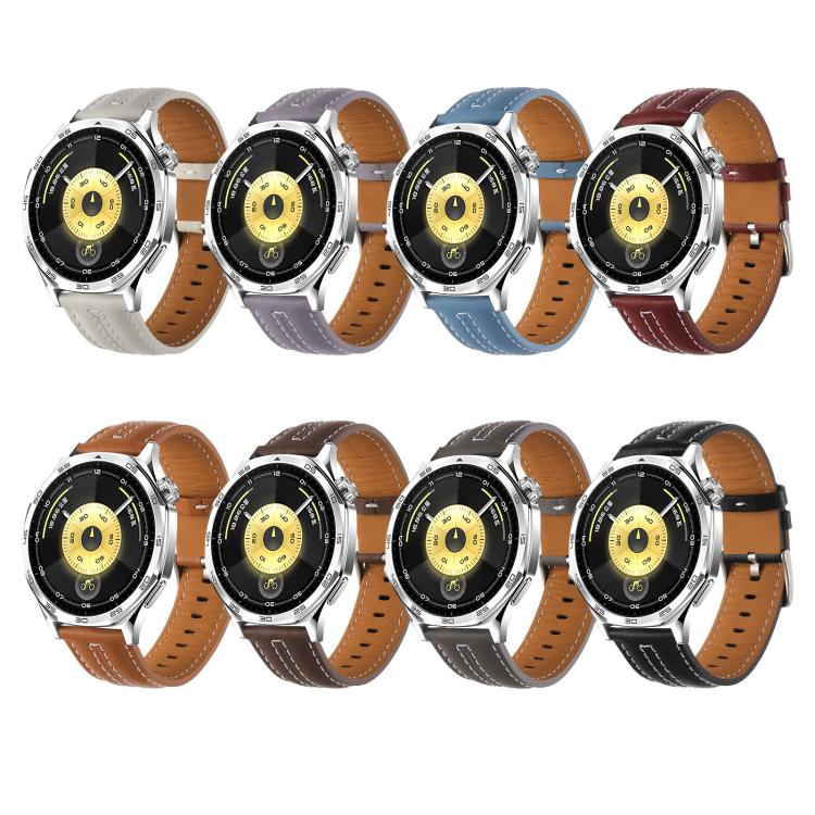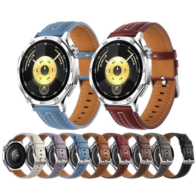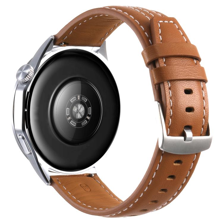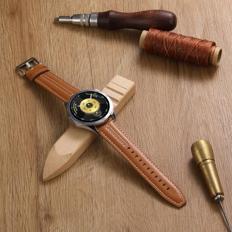 Correa de cuero con hebilla plateada para Huawei Watch GT 6 de 46 mm (amarillo y marrón)