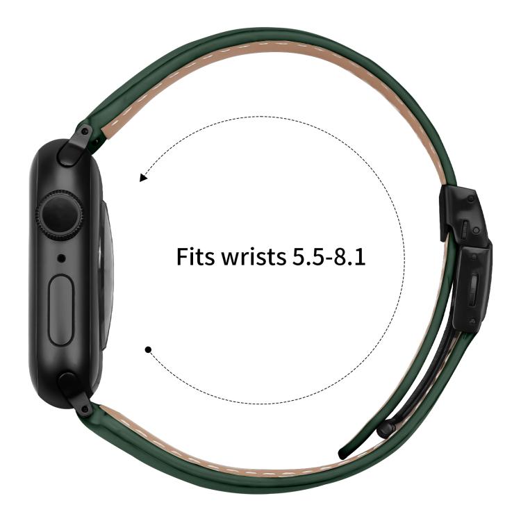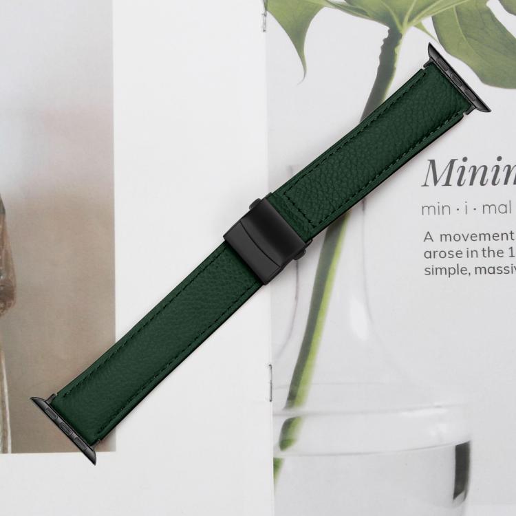 Correa de cuero con hebilla trasera de tortuga negra y textura de lichi para Apple Watch de 46 mm, 49 mm, 45 mm y 44 mm (verde)