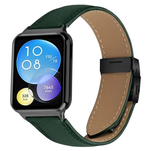 Correa de cuero con hebilla trasera de tortuga negra y textura de lichi para Xiaomi Smart Band 9 Pro y Redmi Watch 5 (verde)