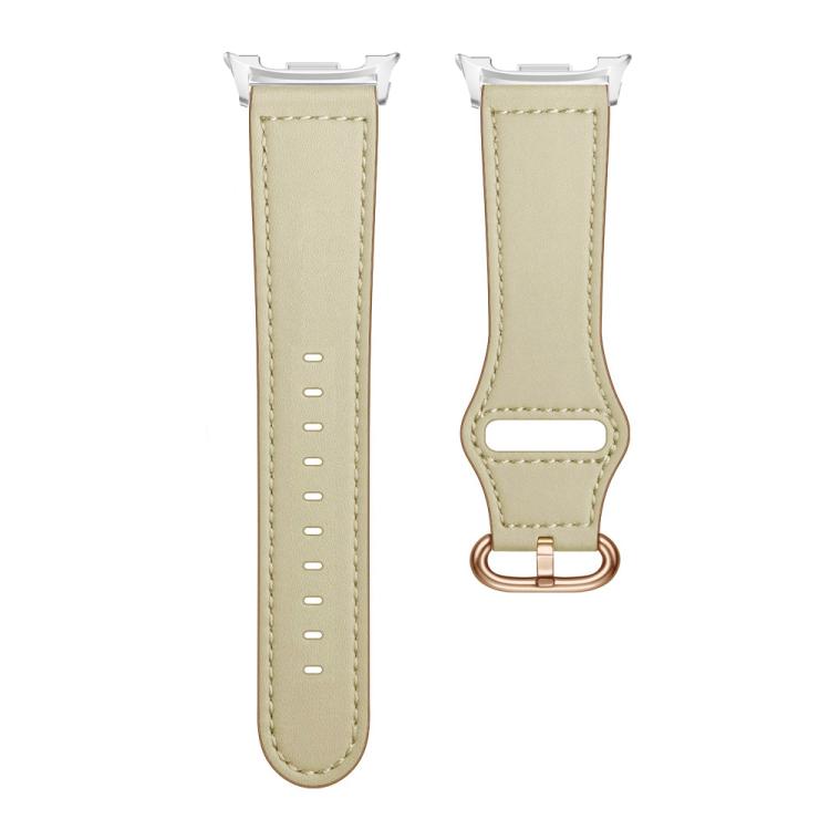 Correa de cuero genuino con hebilla clásica para Samsung Galaxy Watch8/Watch8 Classic (blanco marfil)