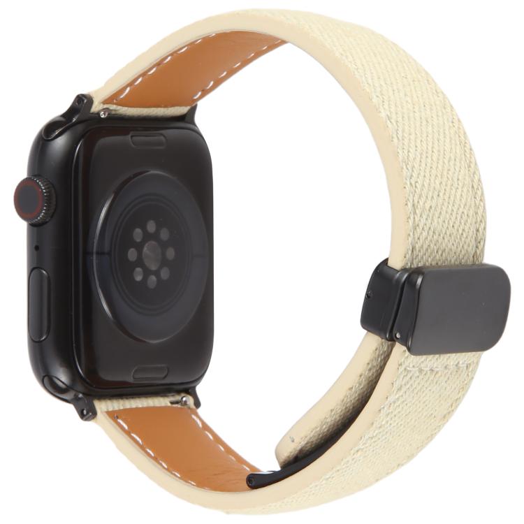 Correa de cuero vaquero con hebilla magnética plegable para Apple Watch de 42 mm, 41 mm, 40 mm y 38 mm (albaricoque)