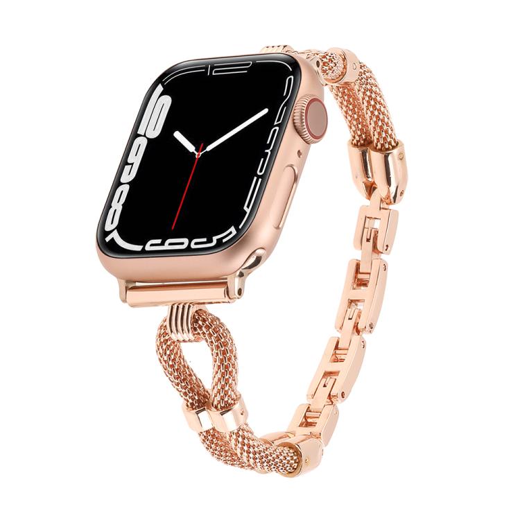 Correa de metal con cadena de cobre para Apple Watch de 46 mm, 49 mm, 45 mm y 44 mm (oro rosa)