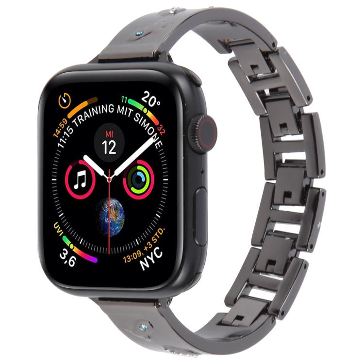 Correa de metal con cierre de liberación rápida de diamante para Apple Watch de 42 mm, 41 mm, 40 mm y 38 mm (negra)