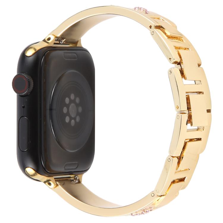 Correa de metal con cierre rápido de diamante para Apple Watch de 42 mm, 41 mm, 40 mm y 38 mm (dorada)