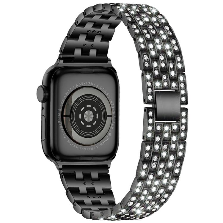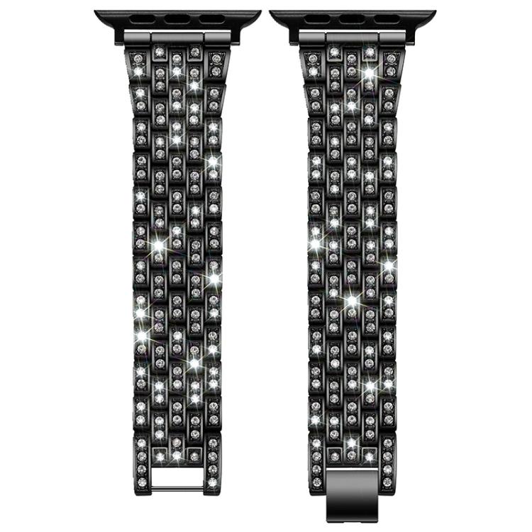 Correa de metal con cinco cuentas de diamantes para Apple Watch 38/40/41/S10 de 42 mm (negro)