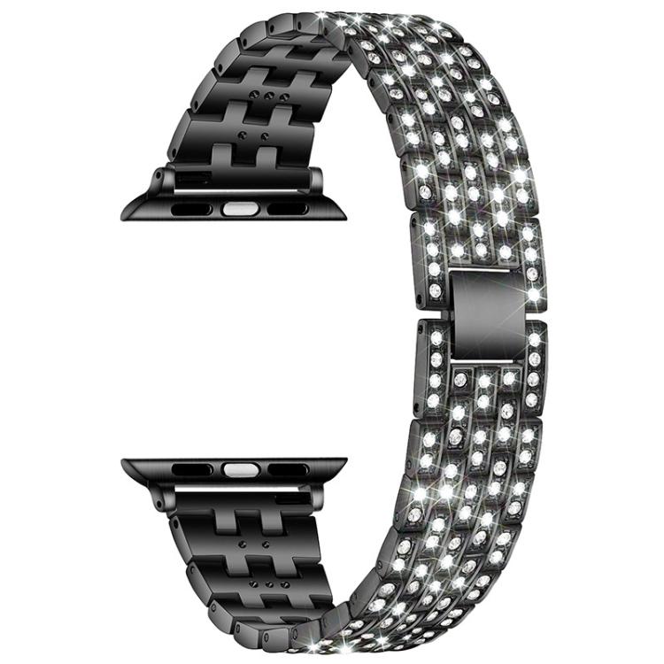 Correa de metal con cinco cuentas y diamantes para Apple Watch de 42, 44, 45, 46 y 49 mm (negro)