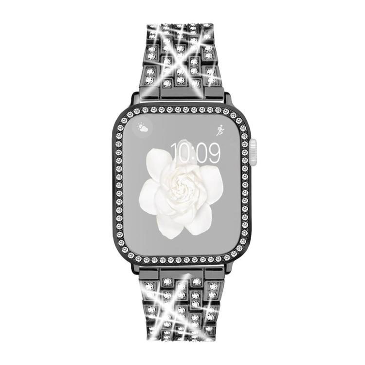 Correa de metal con diamantes brillantes y estuche para Apple Watch Series 41 mm xDfind (negro)