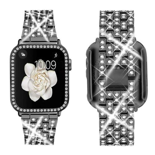 Correa de metal con diamantes brillantes y estuche para Apple Watch Series 42 mm xDfind (negro)