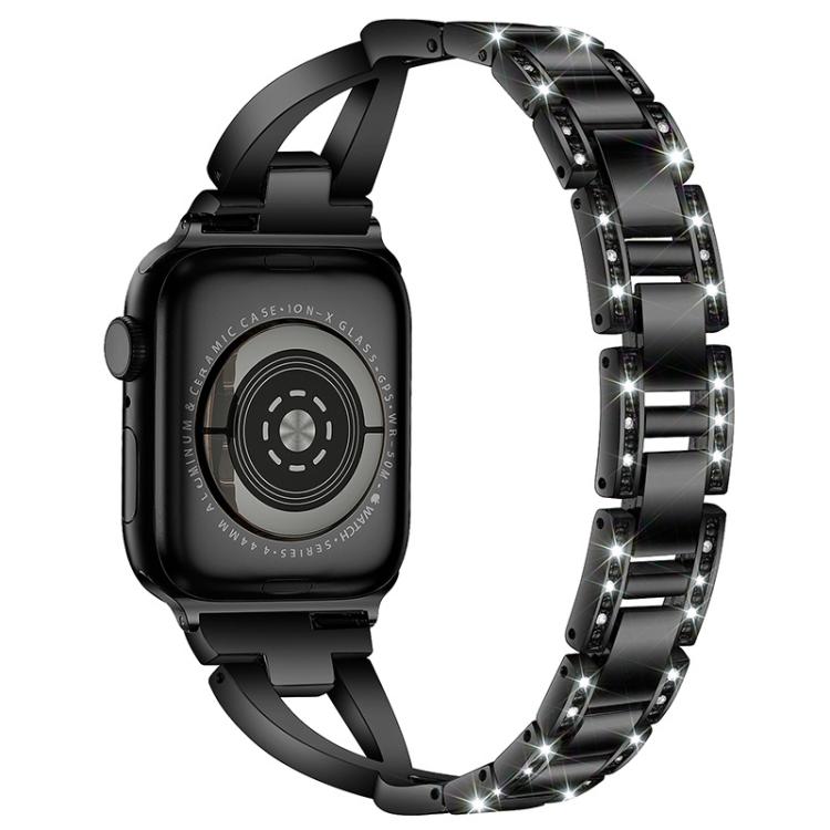 Correa de metal con diamantes de una sola fila en forma de X para Apple Watch 38/40/41/S10 de 42 mm (negro)