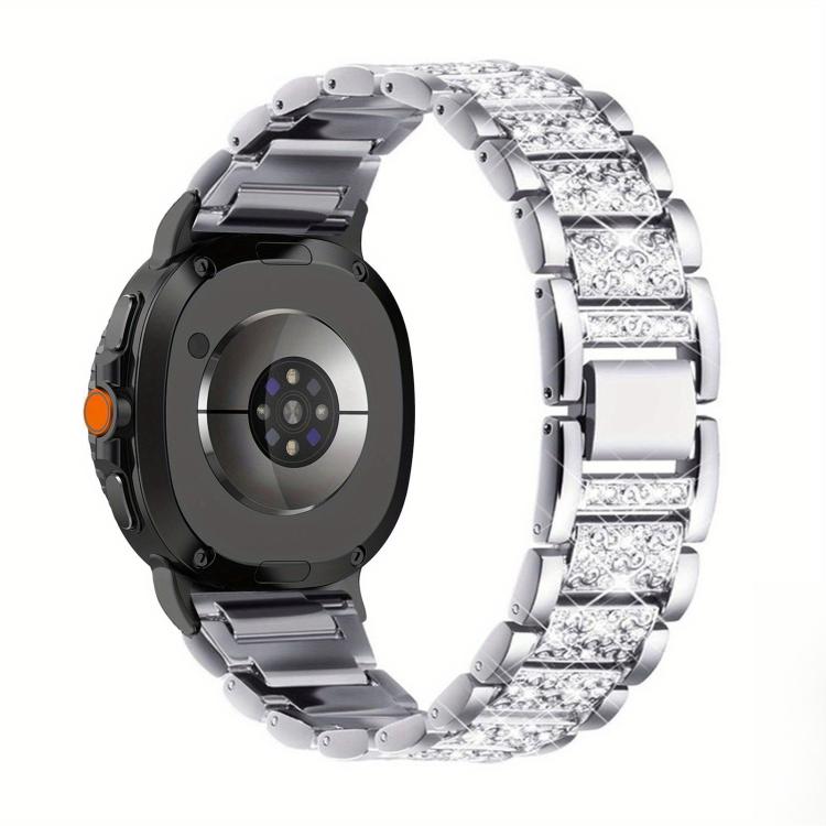 Correa de metal con diamantes y triple abalorio para Samsung Galaxy Watch 8/Watch 8 Classic (plateada)