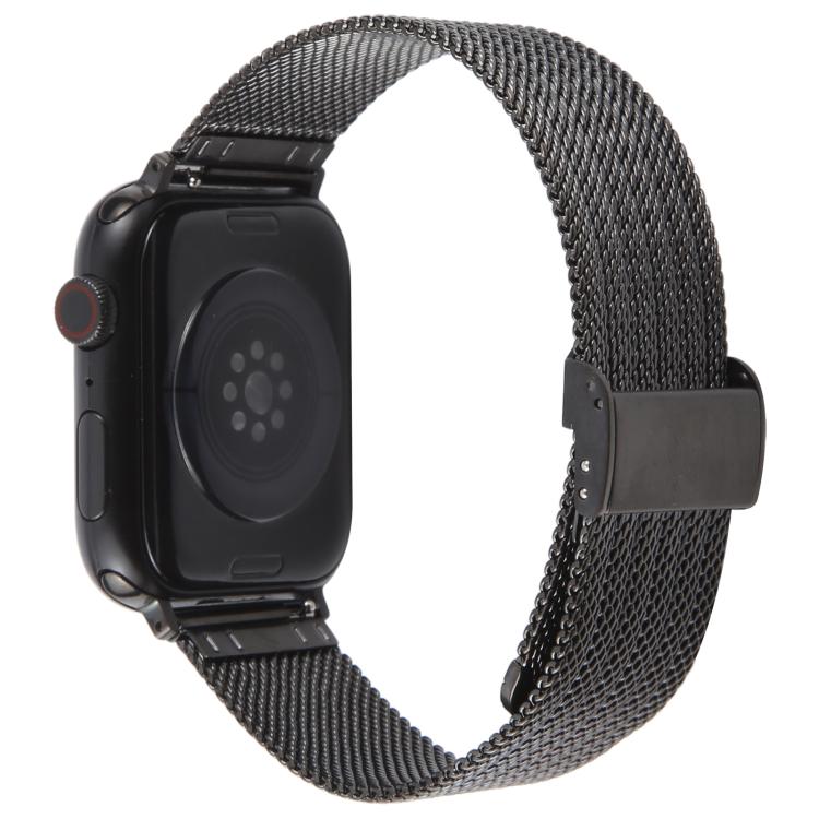 Correa de metal milanesa gruesa con relieve y hebilla integrada para Apple Watch de 46 mm, 49 mm, 45 mm y 44 mm (negra)