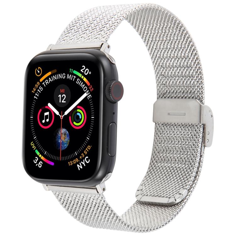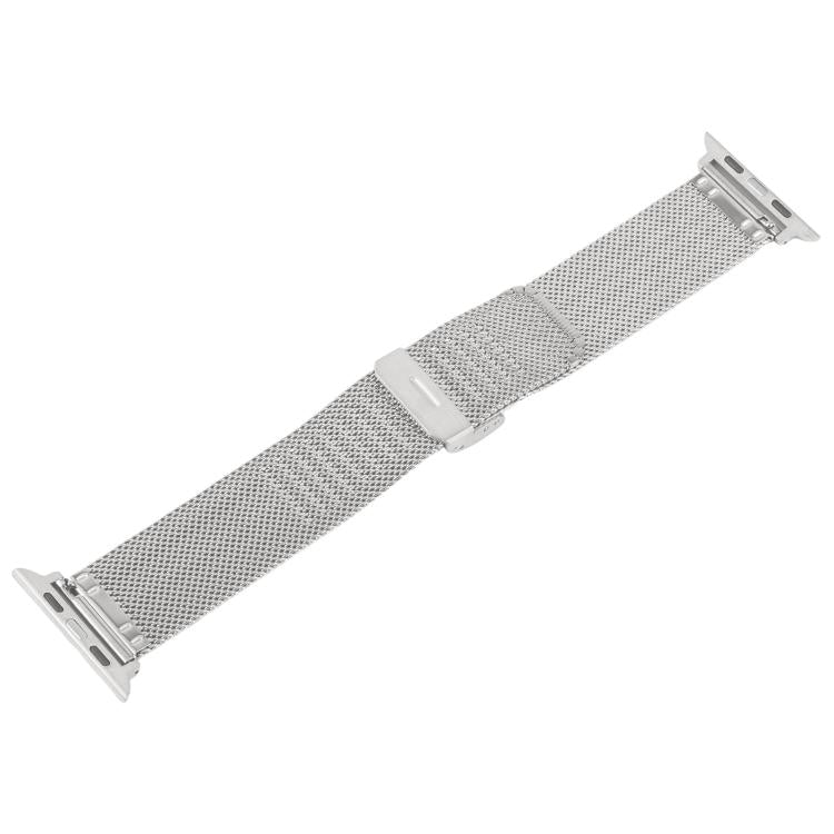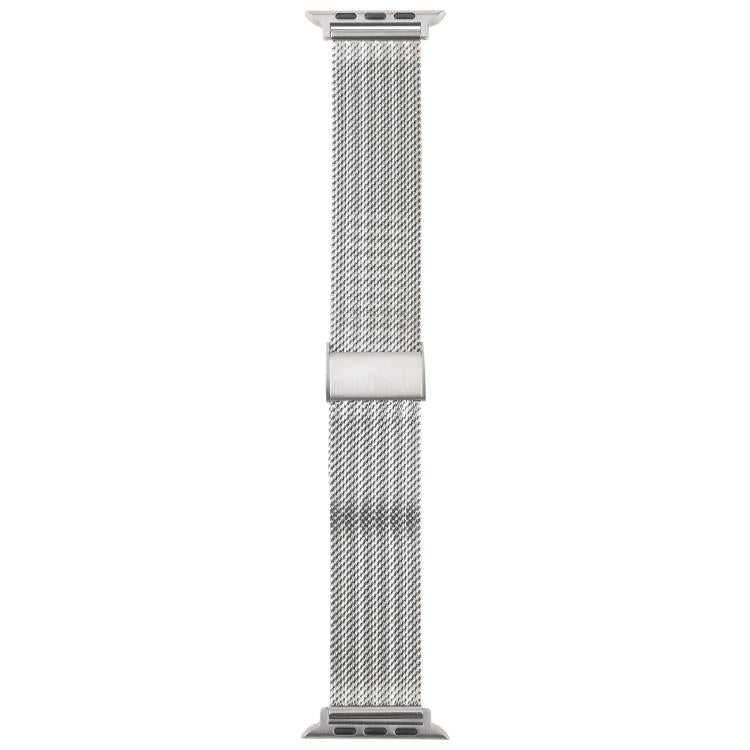 Correa de metal milanesa gruesa con relieve y hebilla integrada para Apple Watch de 46 mm, 49 mm, 45 mm y 44 mm (plateada)