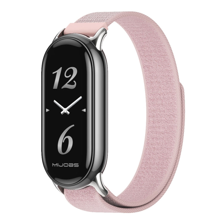 Correa de Nailon Mijobs para Reloj Inteligente Xiaomi Band 9/8 (Rosa y Plateada)