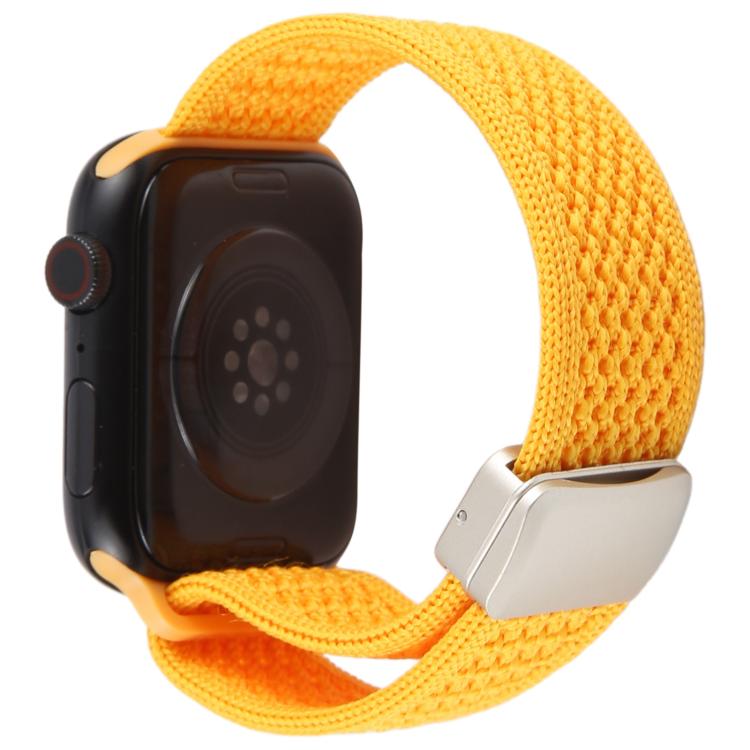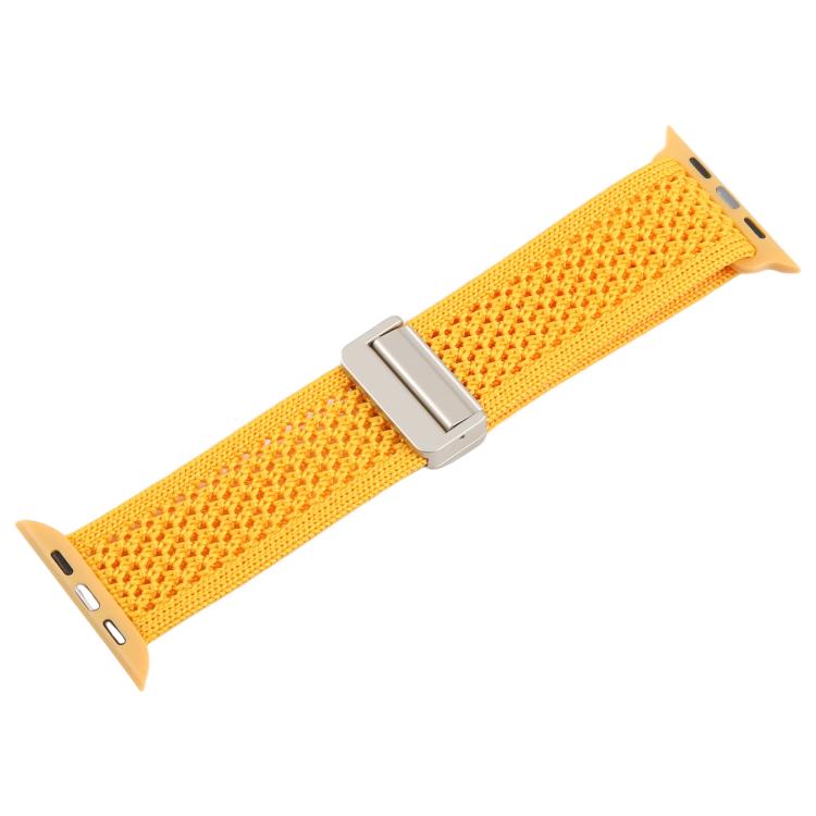 Correa de nailon transpirable con hebilla magnética para Apple Watch de 46 mm, 49 mm, 45 mm y 44 mm (amarillo-naranja)