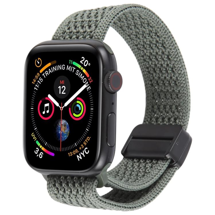 Correa de nailon transpirable con hebilla magnética para Apple Watch de 46 mm, 49 mm, 45 mm y 44 mm (verde oliva)