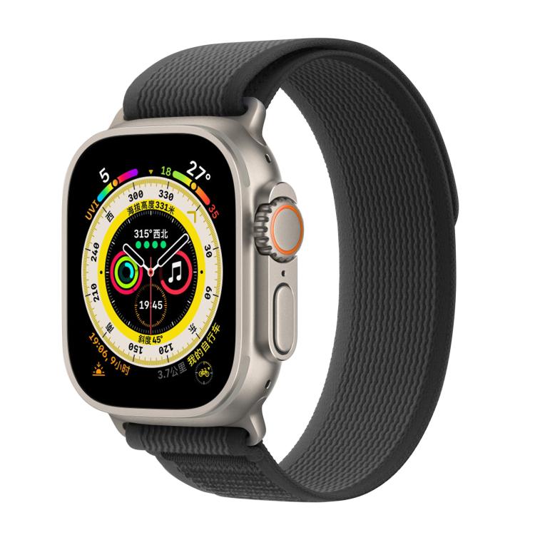 Correa de nailon Wild Path Loop para Apple Watch Series 10 de 42 mm con película curva 3D (negro y gris)
