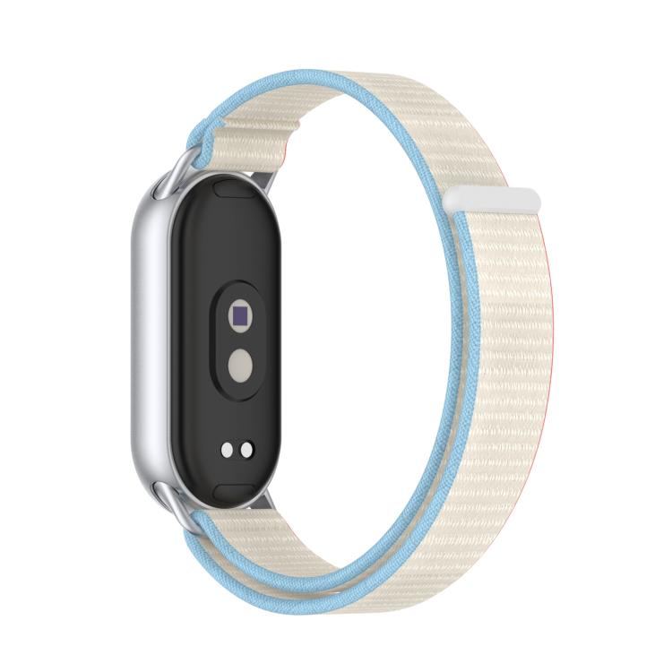 Correa de reloj con cierre de velcro de nailon integrado para Xiaomi Smart Band 10/9/8 (blanco lechoso)