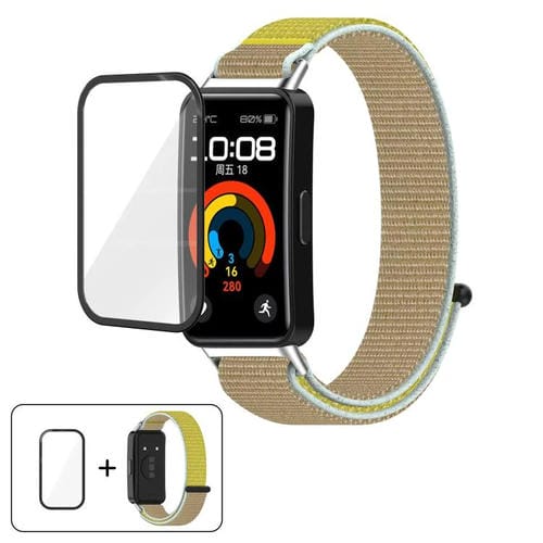 Correa de reloj con cierre de velcro de nailon y película curva 3D para Huawei Band 10/10 NFC (Camello)