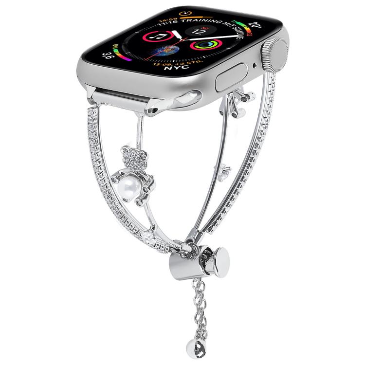 Correa de reloj con incrustaciones de cobre y circonita cúbica para Apple Watch de 42 mm, 41 mm, 40 mm y 38 mm (plata)