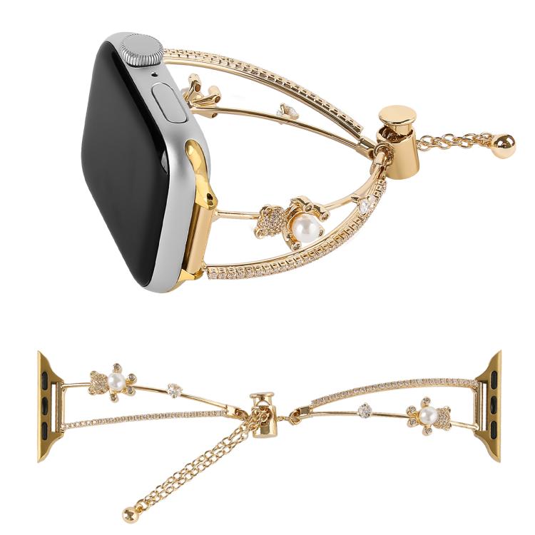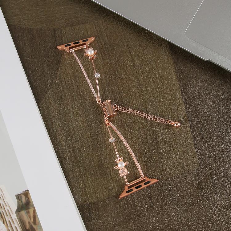 Correa de reloj con incrustaciones de cobre y circonitas de oso para Apple Watch de 46 mm, 49 mm, 45 mm y 44 mm (oro rosa)