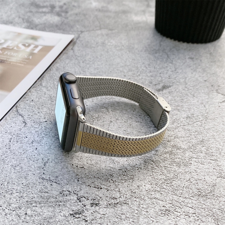 Correa de Reloj Acero con Hebilla para Apple Watch Ultra 49mm Serie 8 7 SE 2 6 5 4 3 2 1 (Oro Plateado)