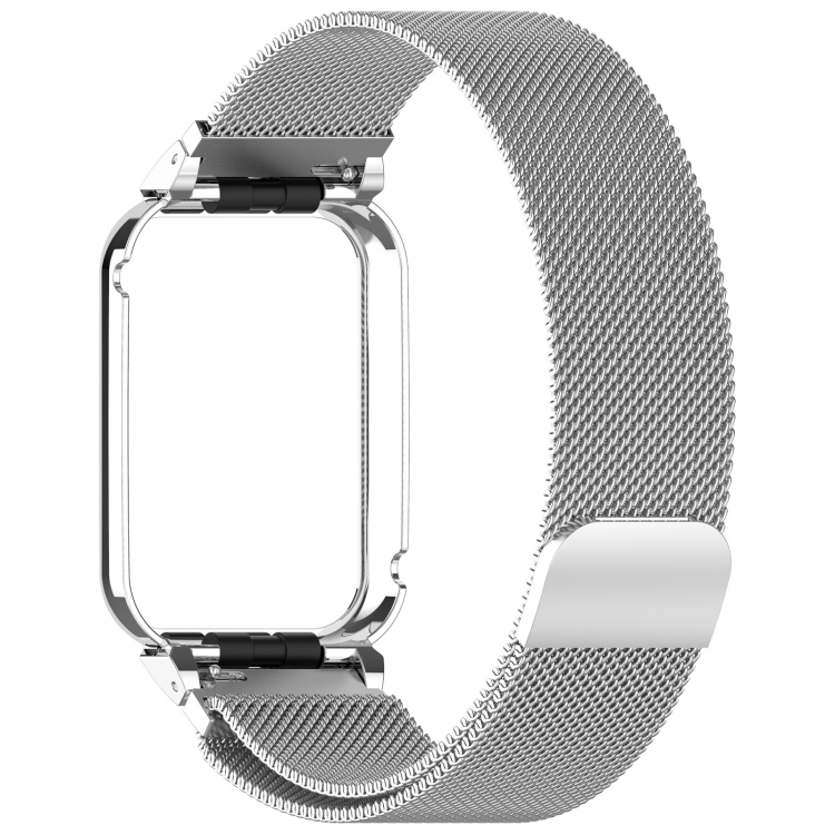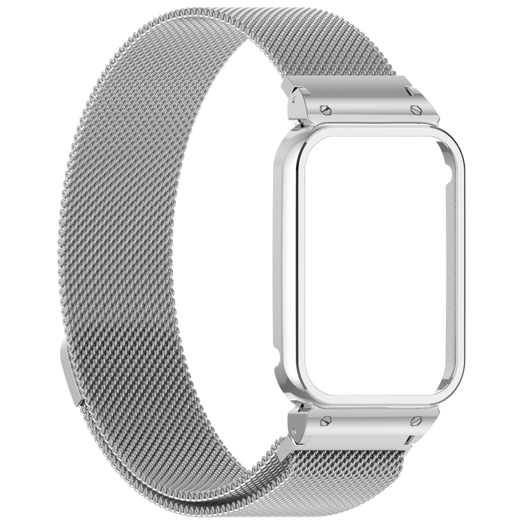 Correa de reloj de acero inoxidable con marco de metal integrado y imán de Milán para Xiaomi Smart Band 9 Pro (plateada)