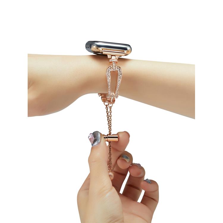 Correa de reloj de aleación de zinc con diamantes en forma de U para Apple Watch de 42 mm, 41 mm, 40 mm y 38 mm (oro rosa)