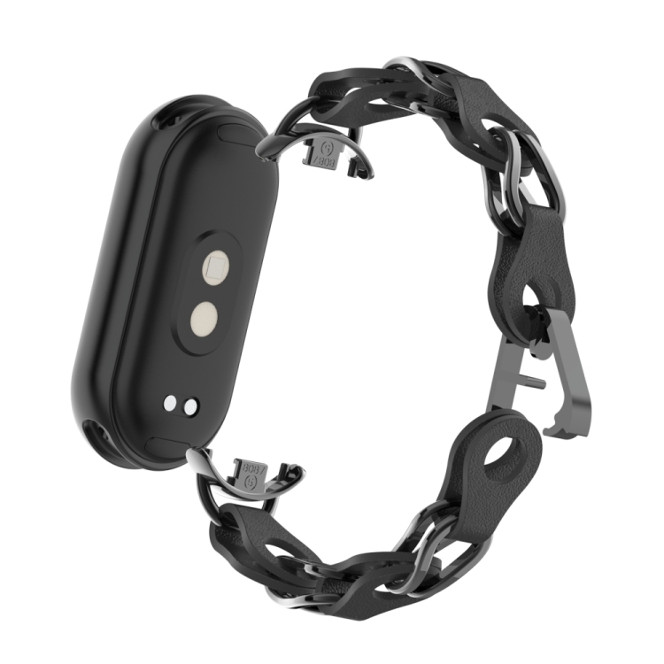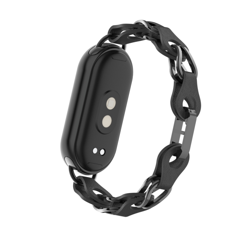Correa de Reloj Cadena Cuero Metal Hueco para Xiaomi Smart Band 9 (Negro)