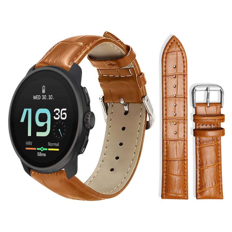 Correa de reloj de cuero con hebilla de pasador y textura de bambú de 22 mm para Suunto Race S / Race / 9 Peak / 5 Peak xDfind (marrón claro)