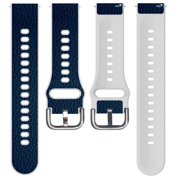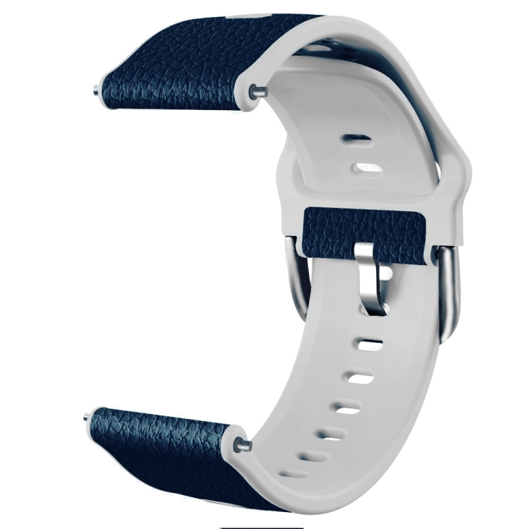 Correa de Reloj Universal 22mm de Cuero TPU Textura Litchi (Azul Blanco)