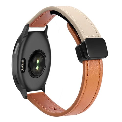 Correa de Reloj de cuero microfibra 20mm con hebilla magnética para Garmin Vivoactive 5 (Naranja Aima + Albaricoque Crema)
