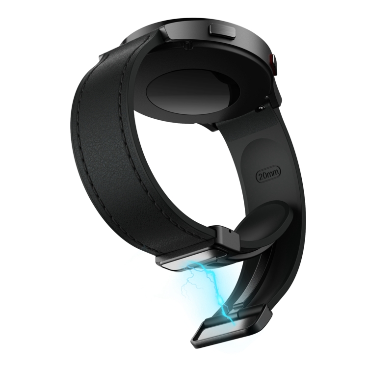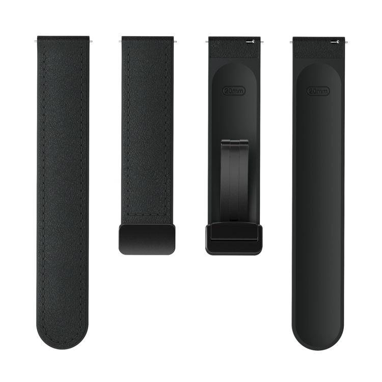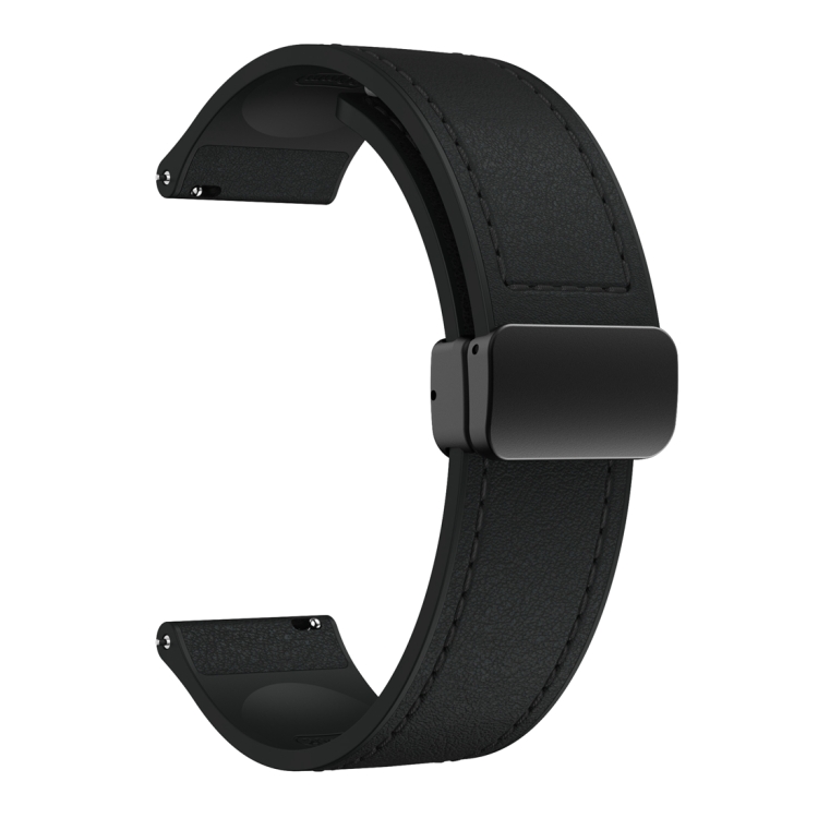 Correa de Reloj de Cuero y Silicona con Hebilla Magnética 20mm (Negro)