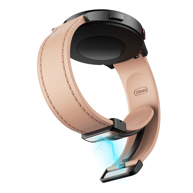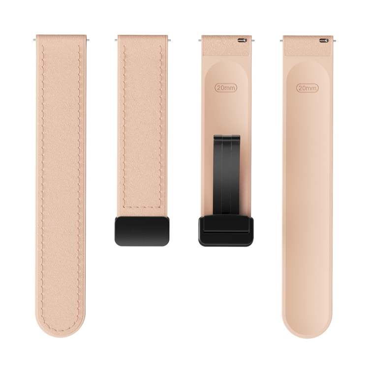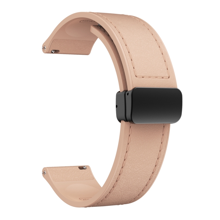 Correa de Reloj de Cuero y Silicona con Hebilla Magnética Negra 20mm (Rosa)