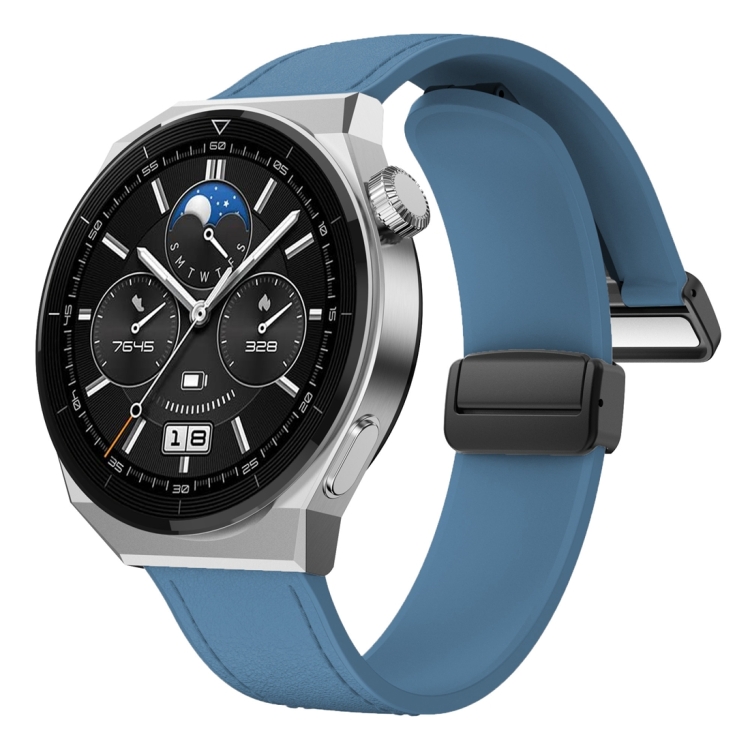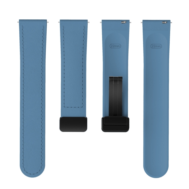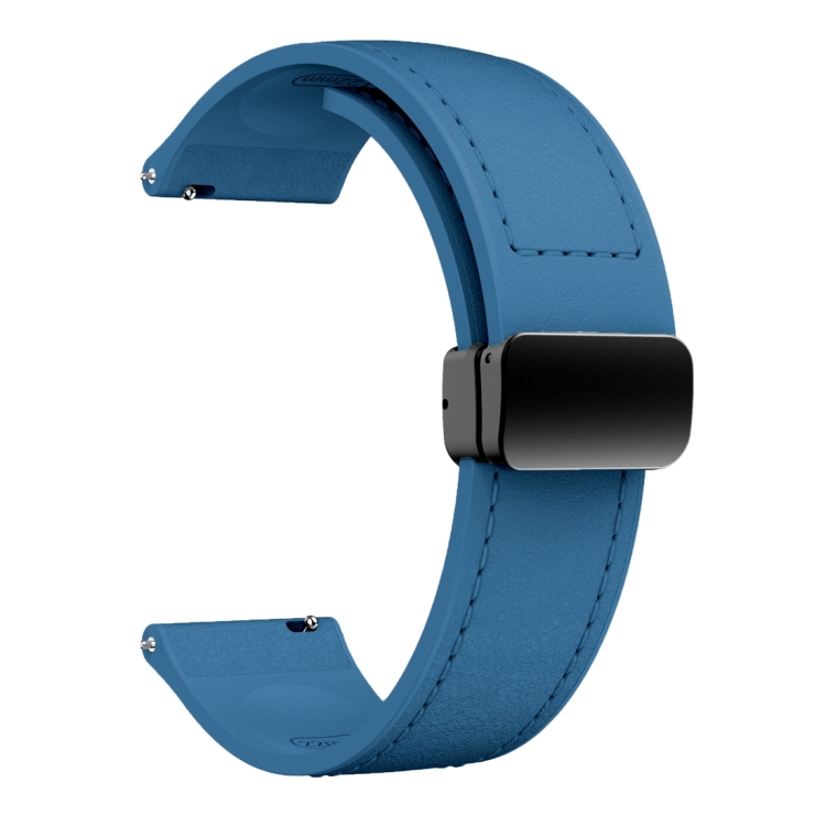 Correa de Reloj de Cuero de Silicona 22mm con Hebilla Negra Magnética (Azul)