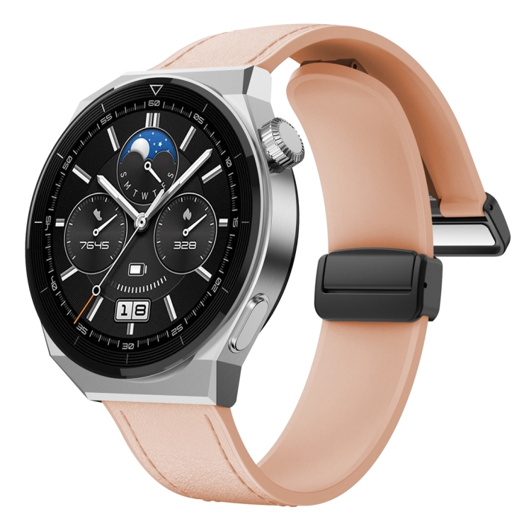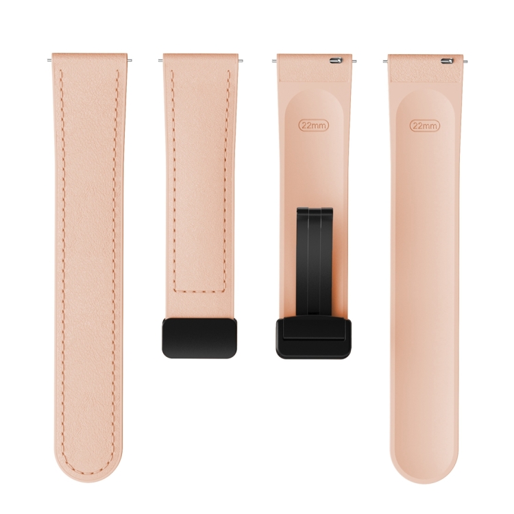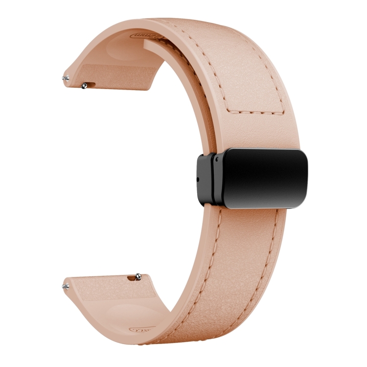 Correa de Reloj de Cuero y Silicona 22mm con Hebilla Negra Magnética (Rosa)