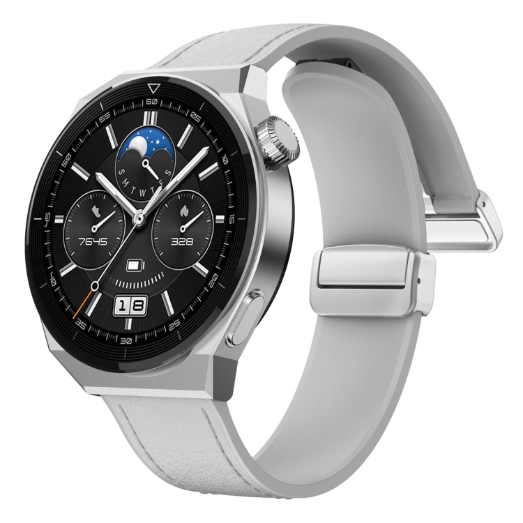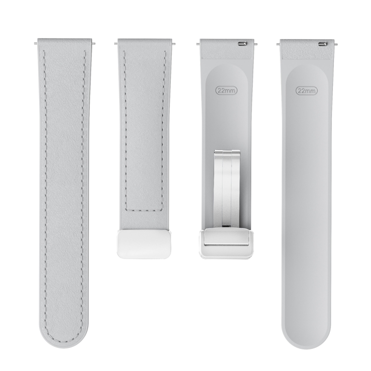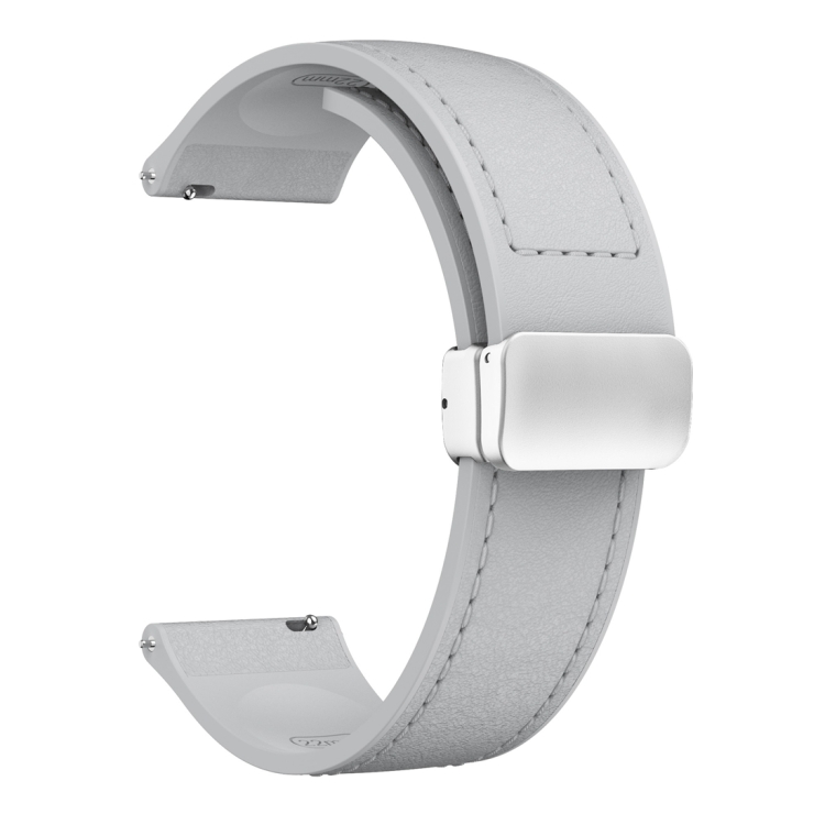 Correa de Reloj de Cuero de Silicona 22mm con Hebilla Plateada Magnética (Gris)