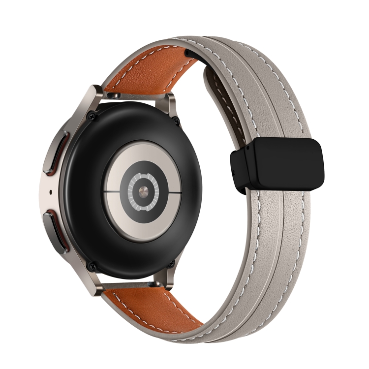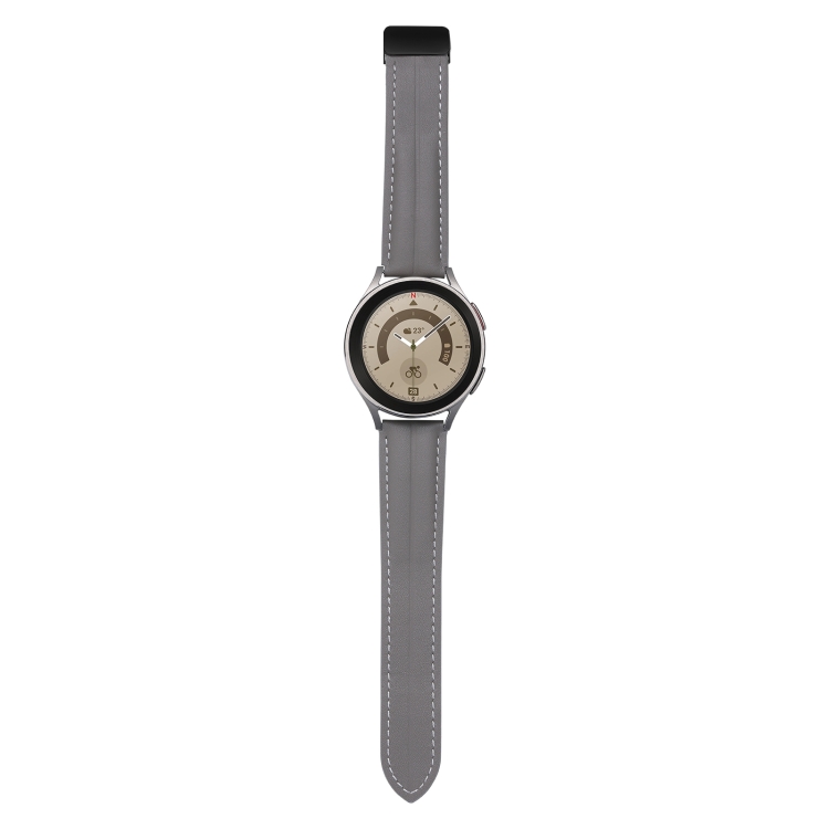 Correa de Reloj de Cuero Genuino Acanalado 20mm con Hebilla Plegable Negra (Gris)