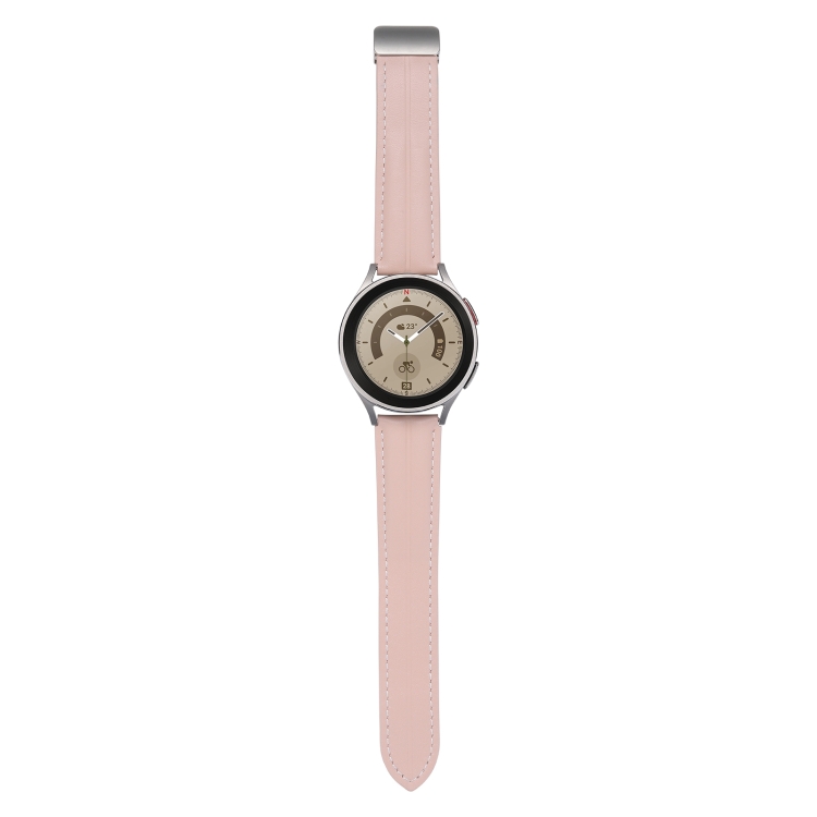 Correa de Reloj Cuero Genuino Acanalado 20mm Hebilla Plegable Plateada (Rosa Claro)