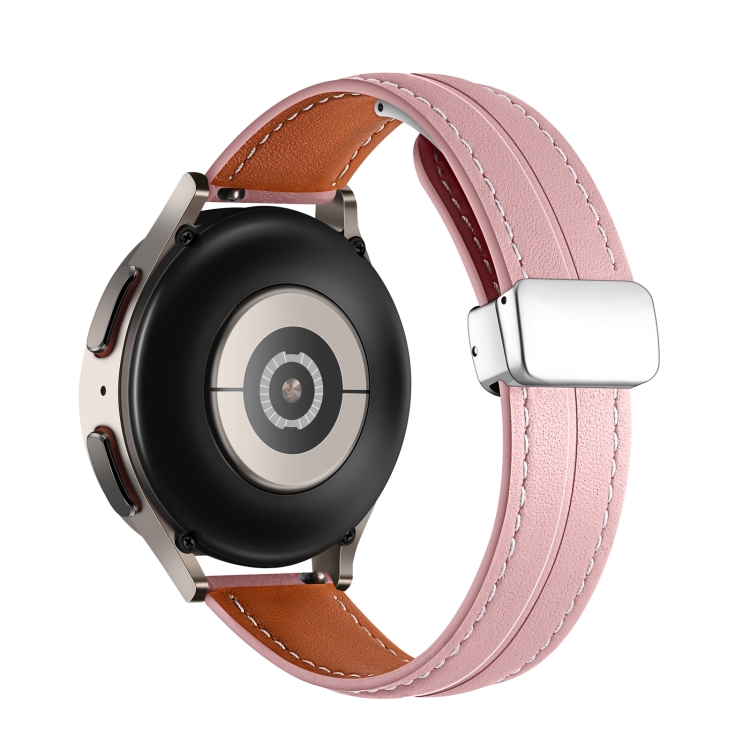Correa de Reloj de Cuero Genuino Acanalado 22mm con Hebilla Plegable Plateada (Rosa Oscuro)