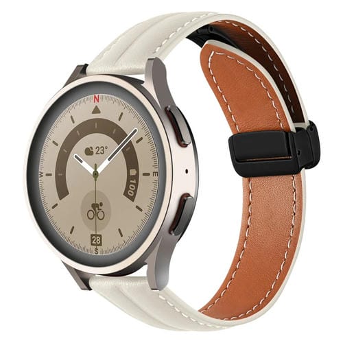 Correa de Reloj Cuero Genuino Ranurado 20mm con Hebilla Plegable Negra (Blanco Roto)